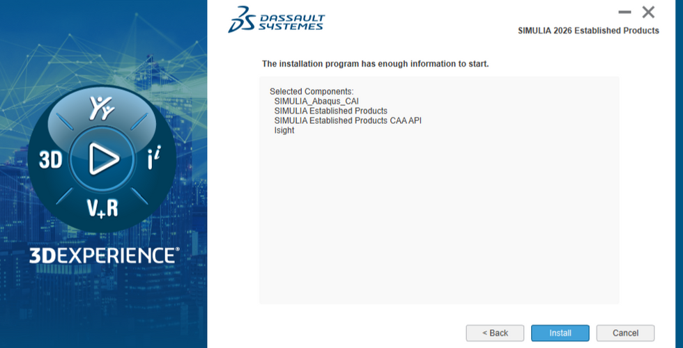 Click Install, the SIMULIA Established Products 2026 product installer will start up.
