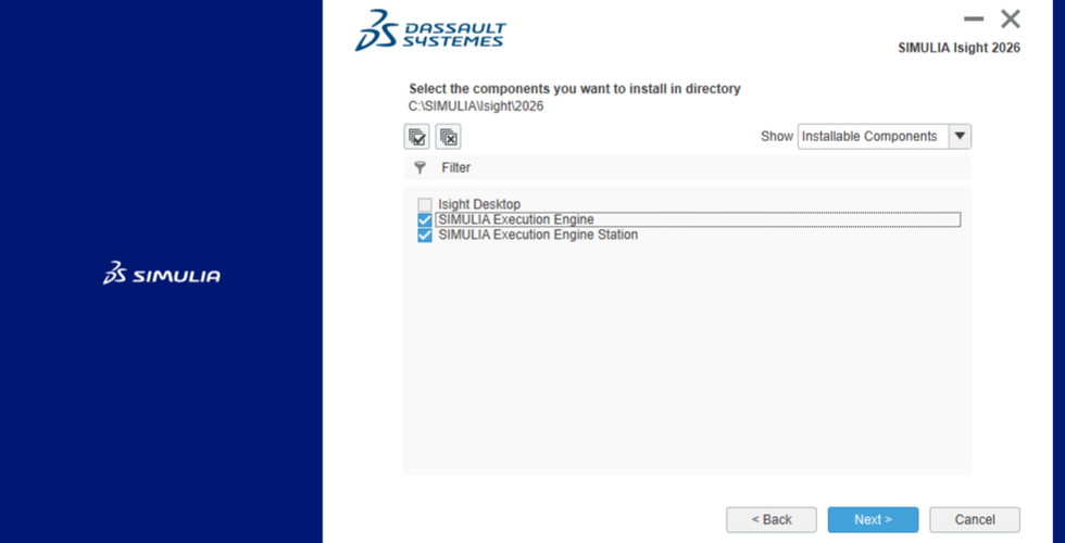 Select Isight Desktop as component to install in the chosen directory from the last step.